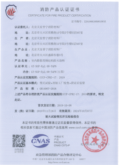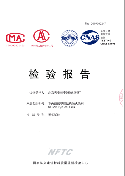 GT-NSP-TAPN 室內(nèi)膨脹型鋼結(jié)構(gòu)防火涂料經(jīng)《國家固定滅火系統(tǒng)和耐火構(gòu)件質(zhì)量監(jiān)督檢驗(yàn)中心》按GB14907-2018《鋼結(jié)構(gòu)防火涂料通用技術(shù)條件》標(biāo)準(zhǔn)檢驗(yàn),理化性能合格,耐火極限最高可達(dá)2h。該涂料具有附著力強(qiáng),耐久性長,涂層薄、耐火極限高、易施工等優(yōu)點(diǎn)。涂層遇火迅速膨脹,涂層形成海綿狀較厚實(shí)的防火隔熱層,使鋼結(jié)構(gòu)遇到火災(zāi)時(shí)不易變彎曲和坍塌,延長鋼結(jié)構(gòu)耐火時(shí)間達(dá)到防火效果。 產(chǎn)品組成: 應(yīng)用范圍:可適用于建筑工程中各種鋼構(gòu)件、球形網(wǎng)架等承重結(jié)構(gòu)的防火保護(hù) 施工工藝: 鋼結(jié)構(gòu)表面應(yīng)徹底除銹,涂刷防銹漆兩遍,表面清潔無油污;