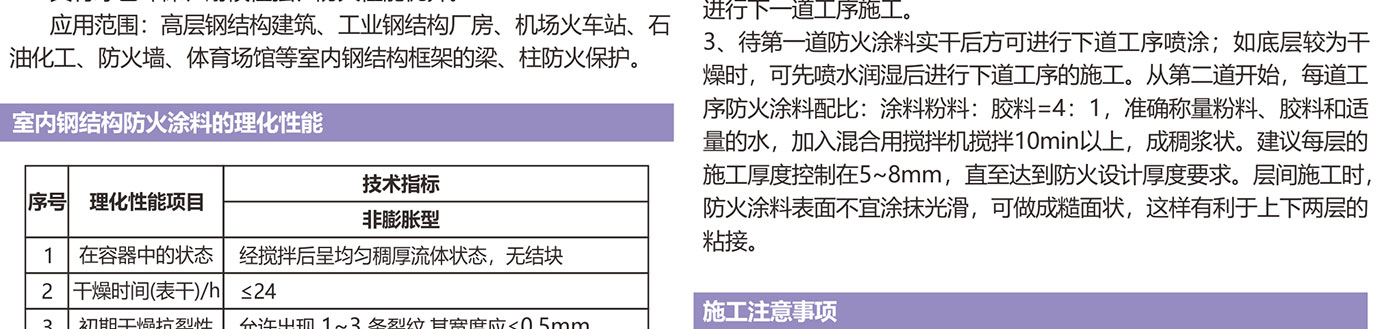 室內(nèi)外非膨脹型鋼結(jié)構(gòu)防火涂料,是我公司國內(nèi)首創(chuàng)用于室內(nèi)的防火涂料產(chǎn)品,其技術(shù)性能按國標(biāo)GB14907-2018標(biāo)準(zhǔn)的規(guī)定要求生產(chǎn)。 具有綠色環(huán)保、耐候性強(qiáng)、防火性能優(yōu)異。 應(yīng)用范圍:高層鋼結(jié)構(gòu)建筑、工業(yè)鋼結(jié)構(gòu)廠房、機(jī)場火車站、石油化工、防火墻、體育場館等室內(nèi)鋼結(jié)構(gòu)框架的梁、柱防火保護(hù)。